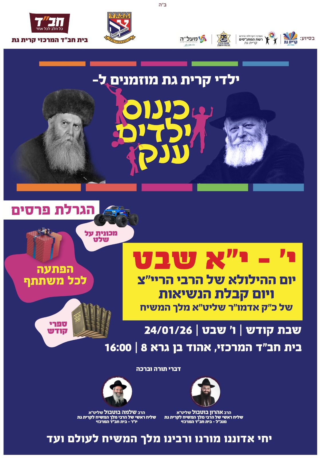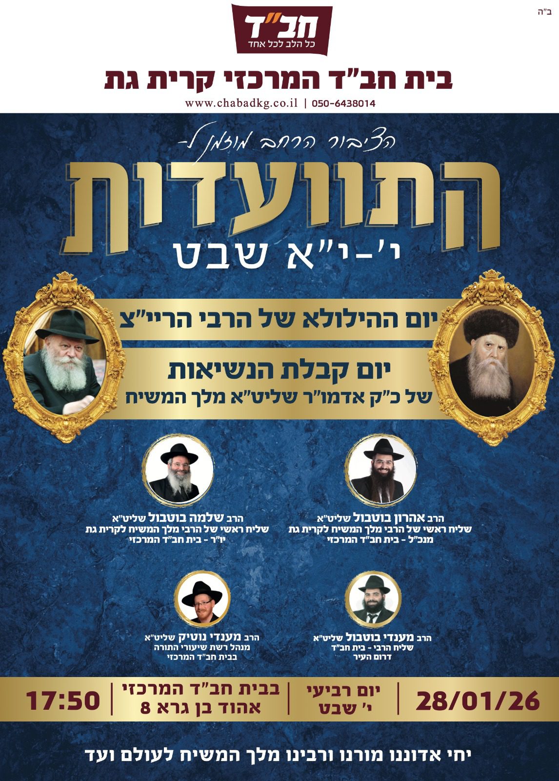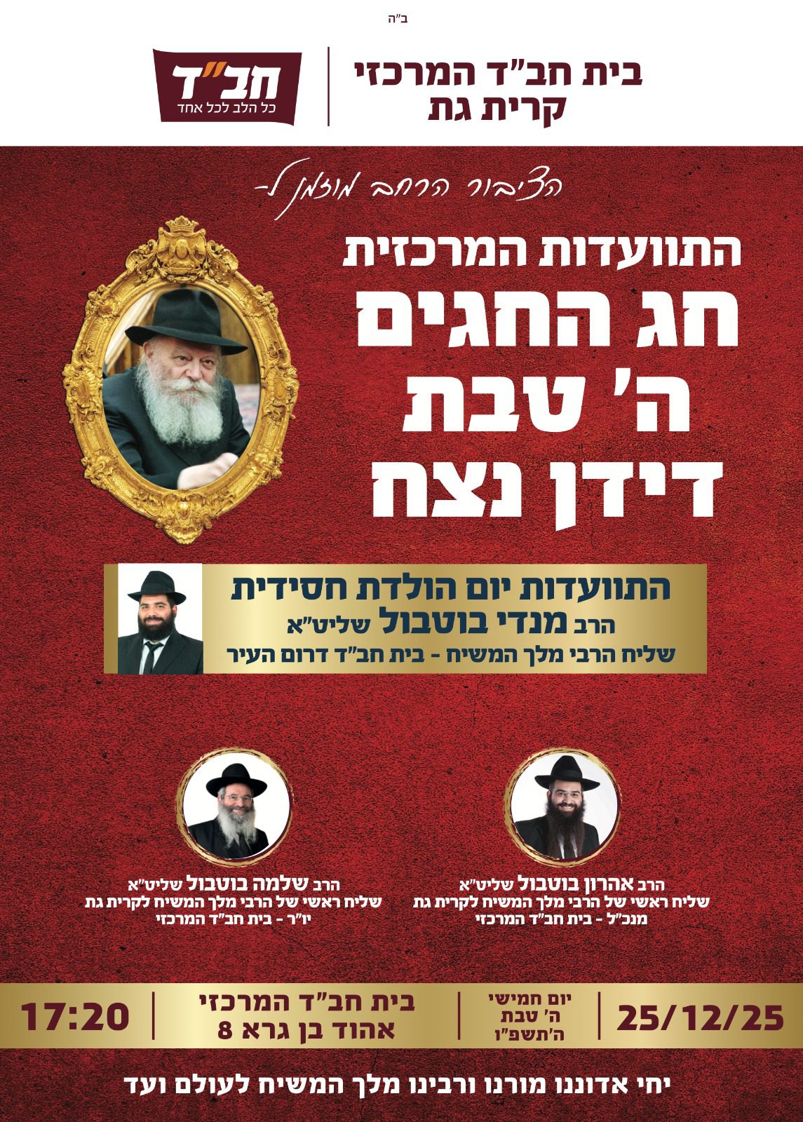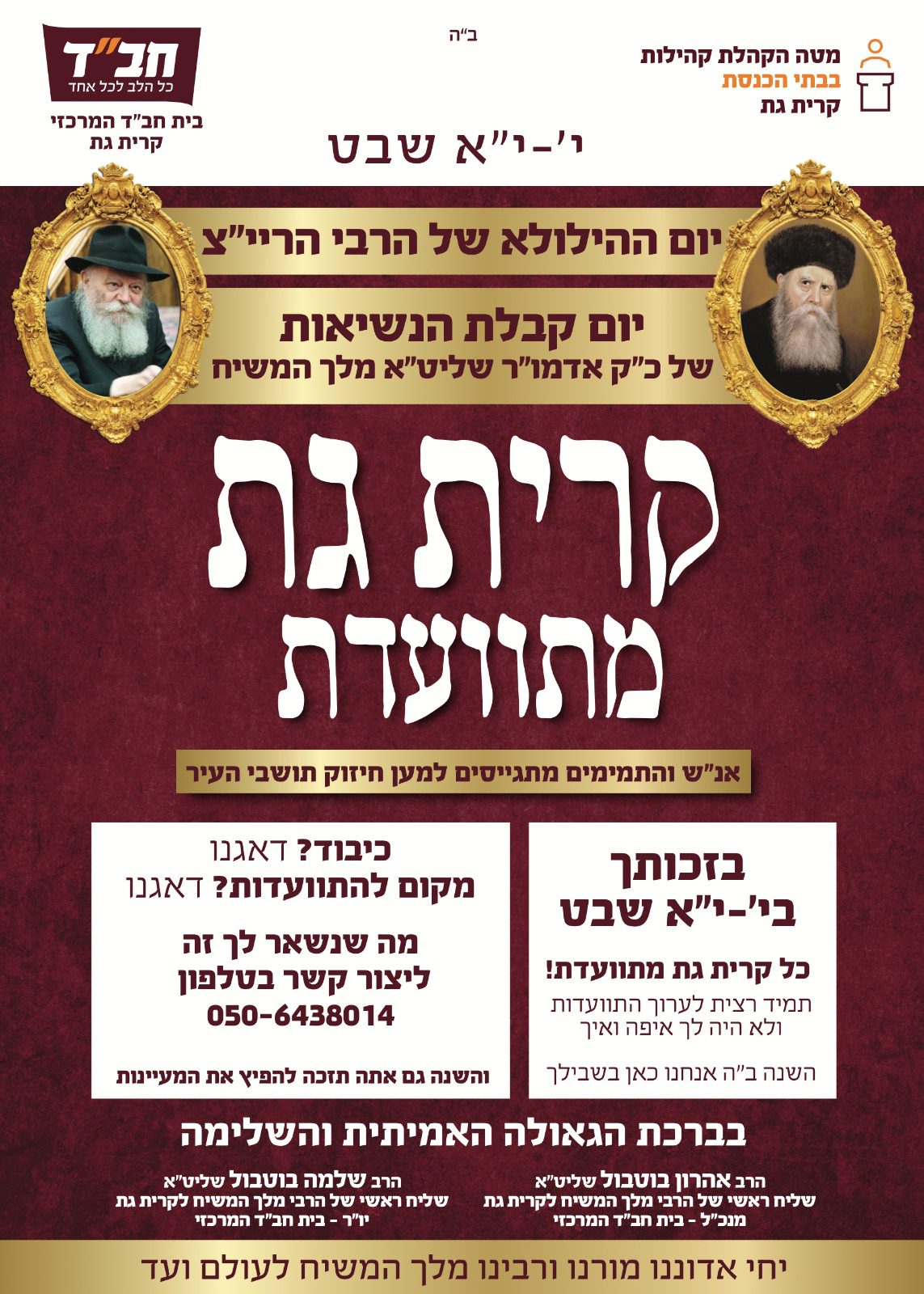 מטה הקהלת קהילות – קרית גת מתוועדת, התוועדויות חסידיות מרתקות בבית חב"ד, כינוסי ילדים בבית חב"ד ועוד..