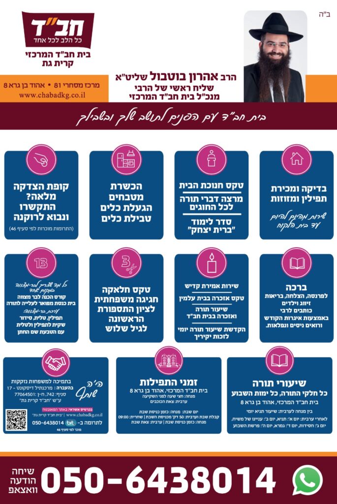 חב"ד לשירותך ❤️ עד בית הלקוח בקרית גת, כרמי גת ובמושבים בסביבה 🚗 🏘