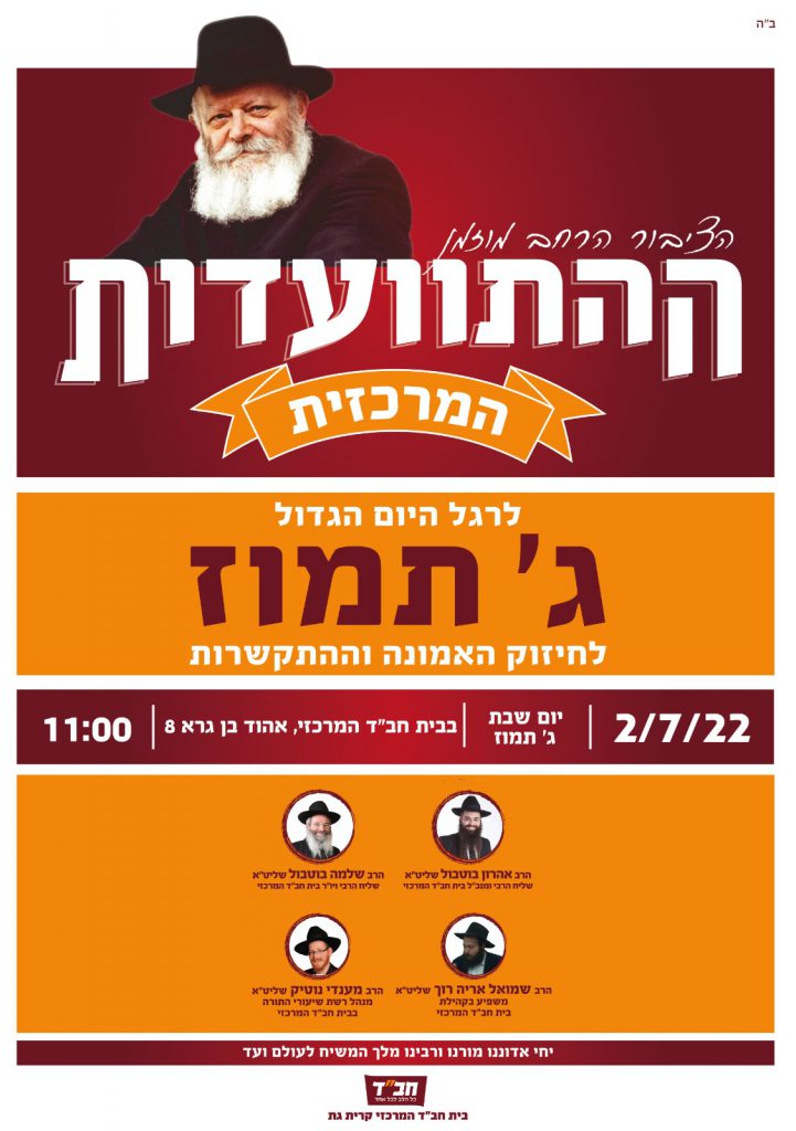 הזמנה להתוועדות חסידית – ג' תמוז